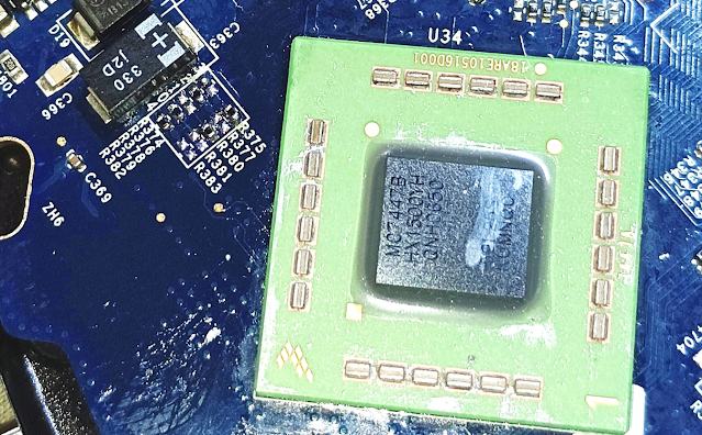 El objetivo es cambiar el procesador por un MC7447 para pasar de 256kb a 512kb de caché L2, y a la vez incrementar la velocidad. Le voy a soldar un MC7447@1500MHz que, como visteis en el post del Mini a 2GHz, sería capaz de llegar a 2GHz, pero vamos a poner un objetivo más modesto, 1.67GHz, más que nada porque no me gusta nada el disipador de INOX que lleva este ordenador, es de lo menos eficiente que ha hecho Apple.